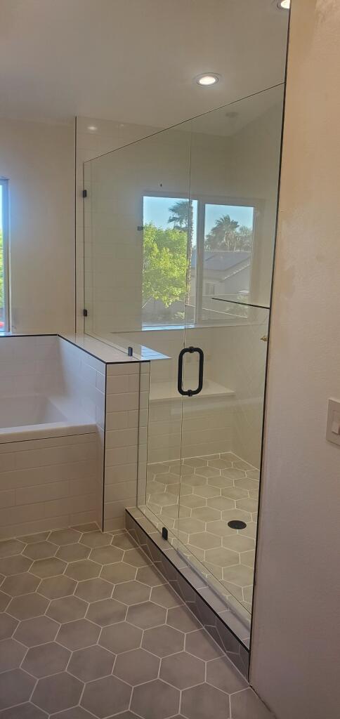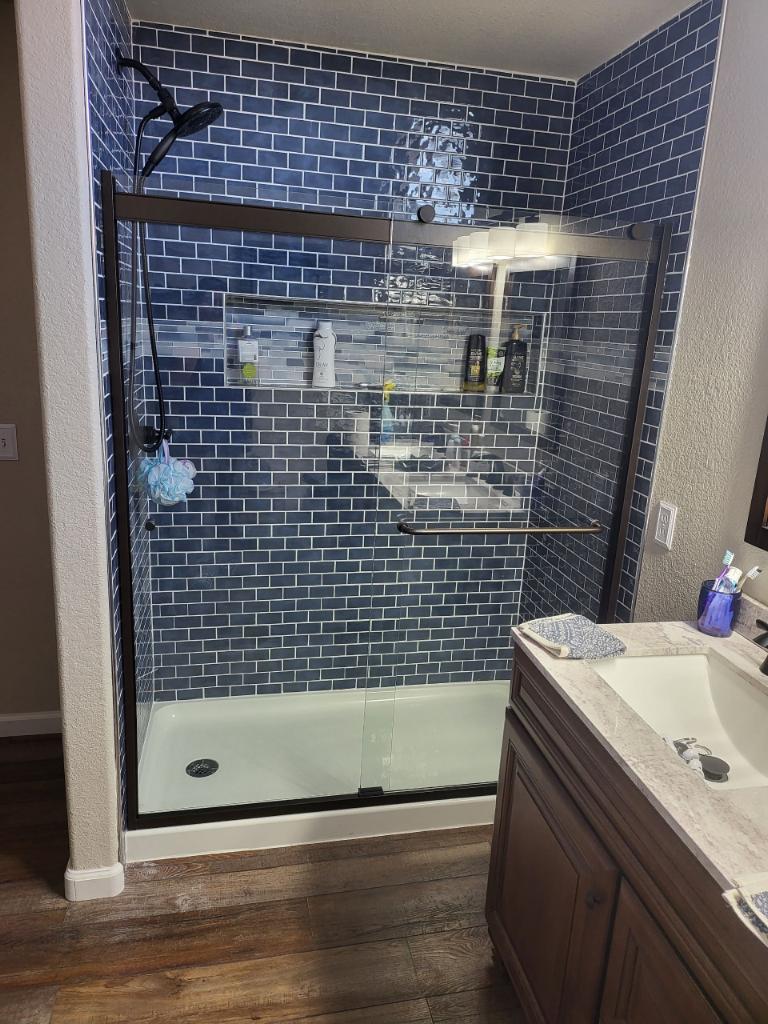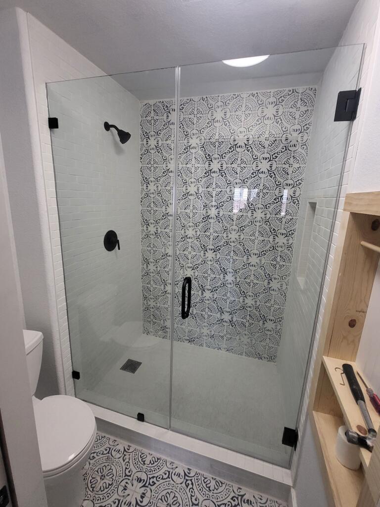 Let us help you personalize your shower doors with an arch or waterfall edge, patterned glass, or other design elements.